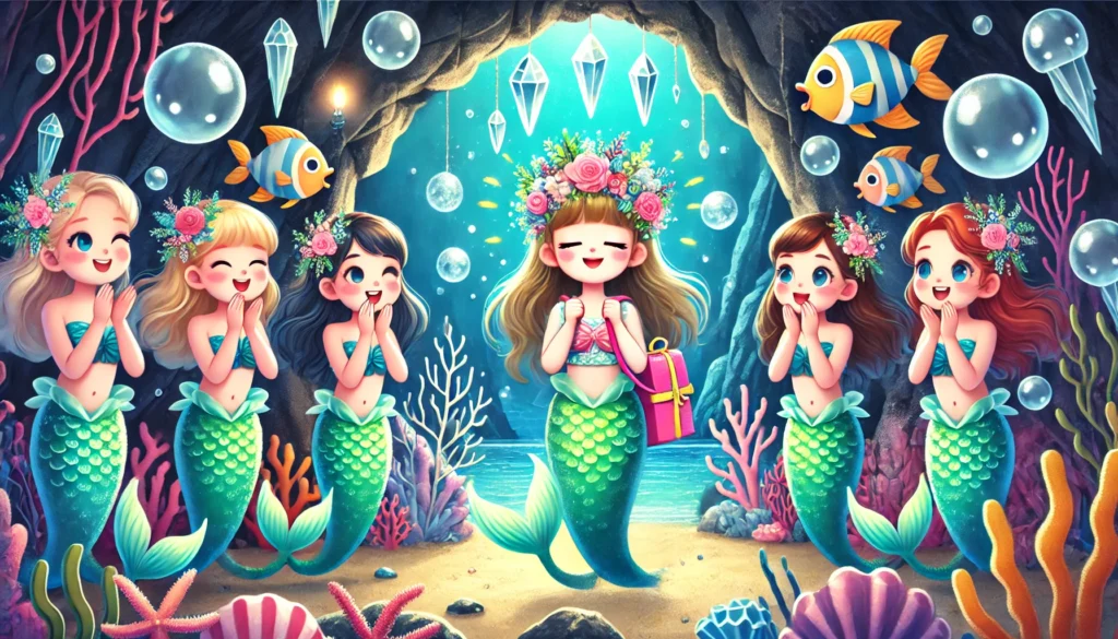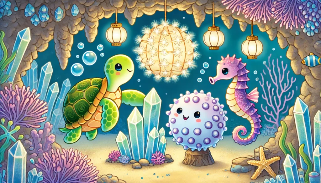 Arkadaşları hemen hazırlıklara başlamışlar. İlk olarak, mercanların arasında saklı, ışıltılı bir mağara bulmuşlar. Bu mağara, kristallerle kaplıymış ve her bir kristal, farklı renklerde parlıyormuş. Tam da Lina’nın hayal ettiği gibi bir yer!